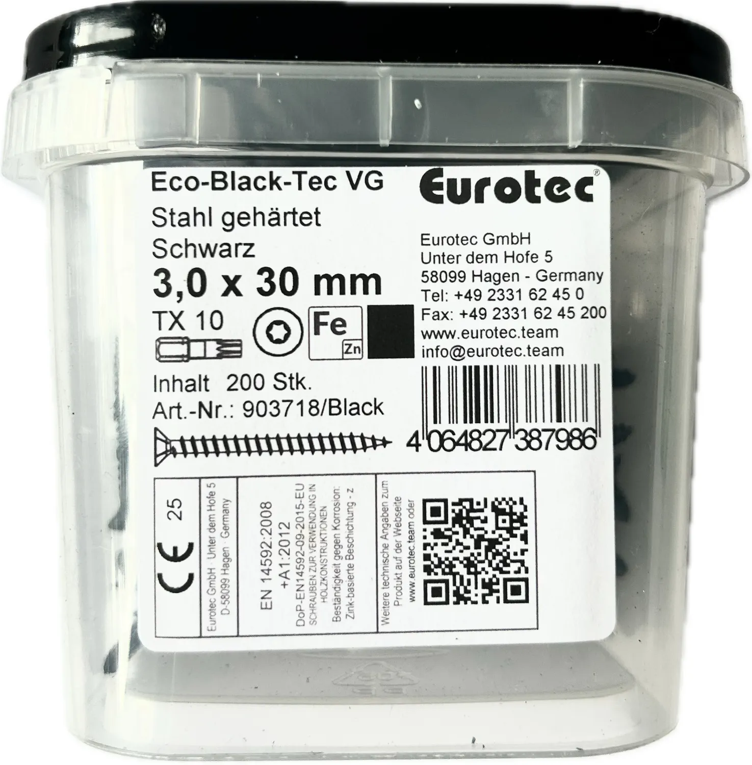Eurotec wkręty do drewna stalowy hartowany czarny torx 10 3x30mm 200szt