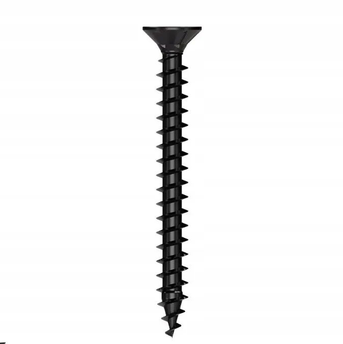 Eco-Black-Tec wykonany z powlekanej na czarno i hartowanej stali węglowej to wkręt do drewna, który jest używany głównie w pomieszczeniach.