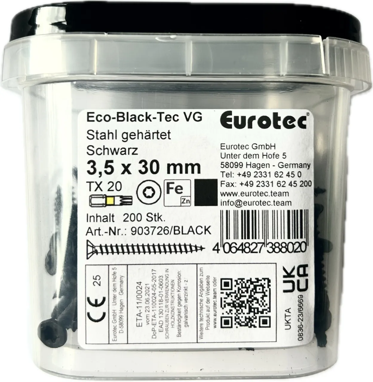 Eurotec wkręty do drewna stalowy hartowany czarny torx 20 3,5x30mm 200szt
