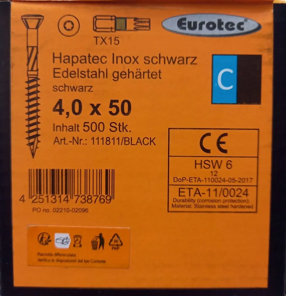 Wkręt ze stali nierdzewnej, hartowany, do mocowania paneli z twardego/miękkiego drewna