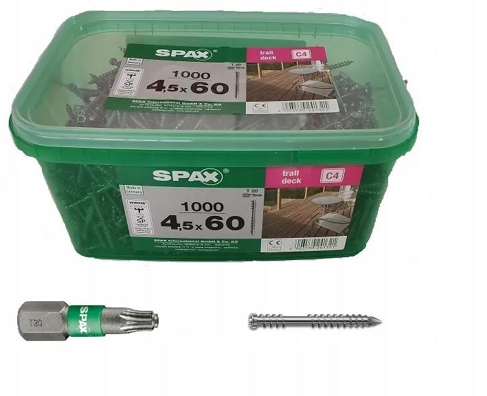 SPAX Wkręty do deski tarasowej 4,5x60mm + Bit GRATIS